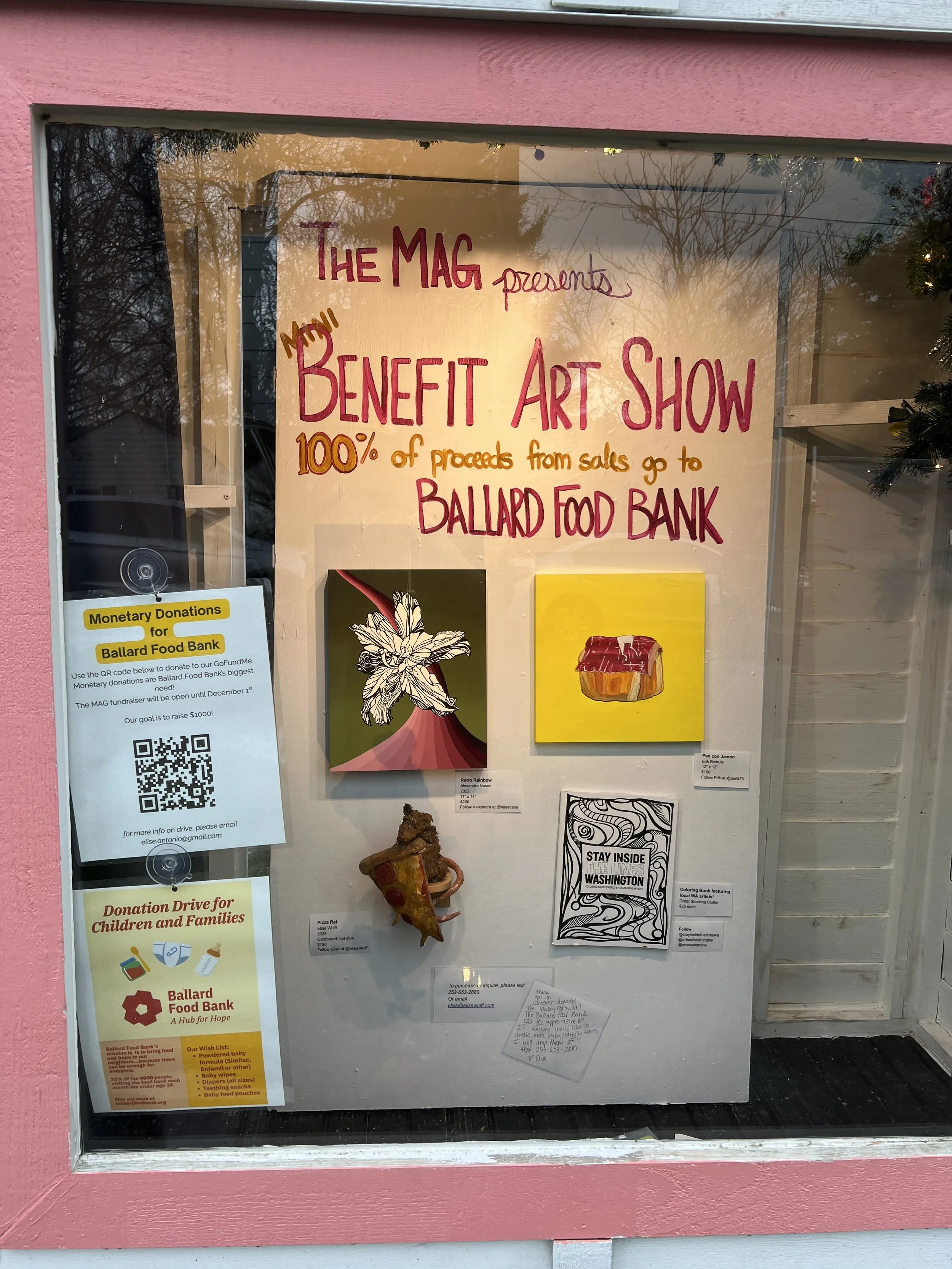The MAG is a tiny art gallery located in Magnolia, Seattle next door to the historic Seattle City Light Building. We display rotating mini art shows that are free and open to people that happen to walk by on this particular street on a particular day.
